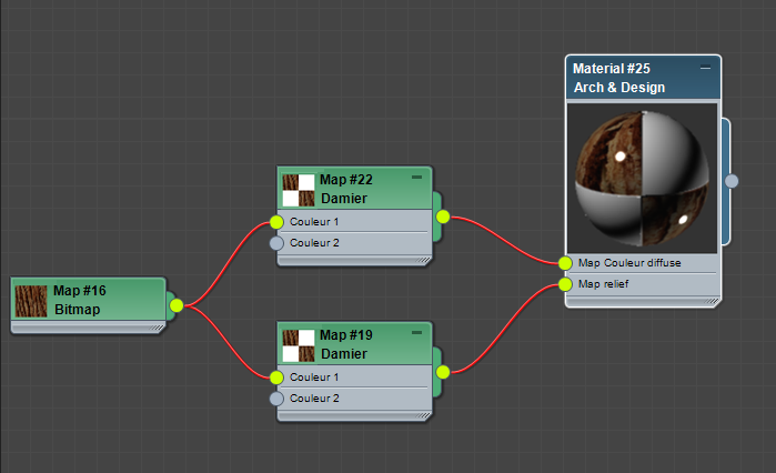 Après avoir cliqué avec le bouton droit sur un fil entre le bitmap et le matériau, sélectionnez Rendre la branche unique