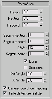 Définit le nombre de segments que comportent les arêtes raccordées du cylindre. L’ajout de segments de raccord a pour effet de courber les arêtes et génère ainsi un cylindre doté de raccords.