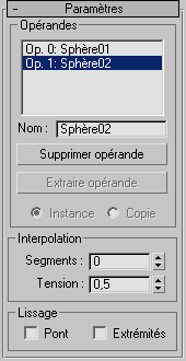 Par exemple, vous pouvez commencer par un seul objet avec deux trous puis ajouter deux objets supplémentaires ayant chacun un trou. Cliquez sur le bouton Choisir opérande et sélectionnez un des objets. Celui-ci sera connecté. Ensuite, cliquez de nouveau sur le bouton Choisir opérande et sélectionnez l'autre objet qui sera lui aussi connecté. Les deux objets connectés sont ajoutés à la liste Opérandes.