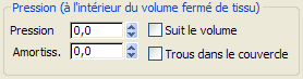 Pression du gaz remplissant le maillage. Augmentez cette valeur afin d'observer l'effet de la pression. En cas de pressions proches de 100.0, le volume de tissu se comporte comme un ballon ; les valeurs inférieures ralentissent l'effet de la gravité. Valeur par défaut = 0,0.