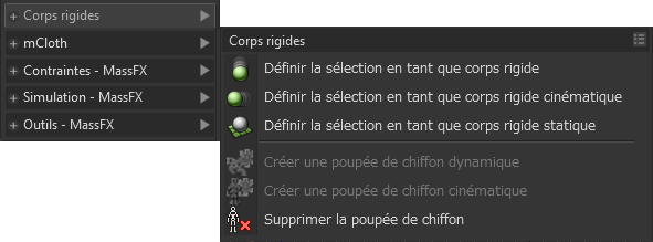 Pour plus d'informations, reportez-vous à la rubrique Sous-menus MassFX.