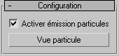 Ce groupe de fonctions permet de définir les caractéristiques physiques de l'icône émetteur (source de particule), ainsi que le pourcentage de particules produites dans les fenêtres et lors du rendu.