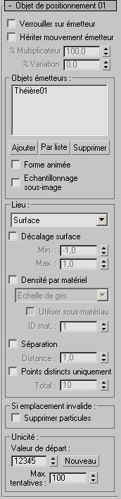 Les points d'émission sont toujours aléatoires ; pour les modifier, changez le paramètre Unicité.