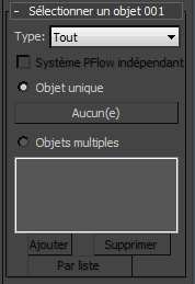 - Systèmes Flux de particules : seuls les systèmes Flux de particules peuvent être sélectionnés.