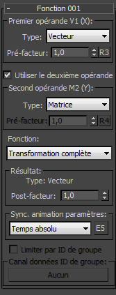 - Lorsque cette option est sélectionnée, une entrée R4 est ajoutée au sous-opérateur, auquel vous pouvez connecter n'importe quel sous-opérateur produisant une valeur réelle. Ce pré-facteur d'entrée remplace la valeur Pré-facteur explicite et est multiplié par le deuxième opérande avant l'application de la fonction.