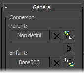 Vous pouvez également contraindre un corps rigide par rapport à un emplacement dans la scène. Cette opération s'effectue en définissant le parent d'une contrainte existante sur une valeur nulle ou « non définie », en cliquant sur le bouton X situé en regard du bouton Parent dans le panneau déroulant Général de l'assistant Contrainte MassFX. Vous pouvez aussi tout simplement affecter une contrainte à un seul corps rigide sélectionné; ceci définit automatiquement le corps en tant qu'enfant et ancre la contrainte dans l'espace.