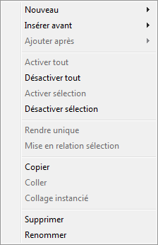 - Insère l'élément choisi au-dessus de chaque action mise en surbrillance. Cette option est uniquement disponible si au moins une action est sélectionnée.