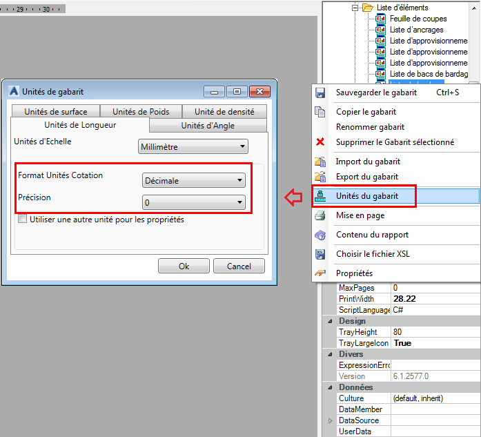 Le formatage du paramètre suit les règles définies dans la commande Unités du gabarit :