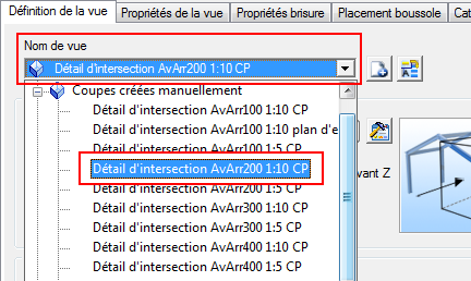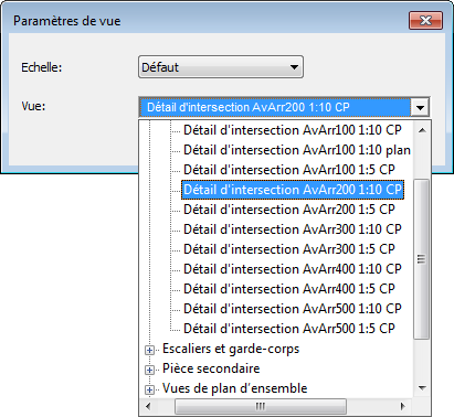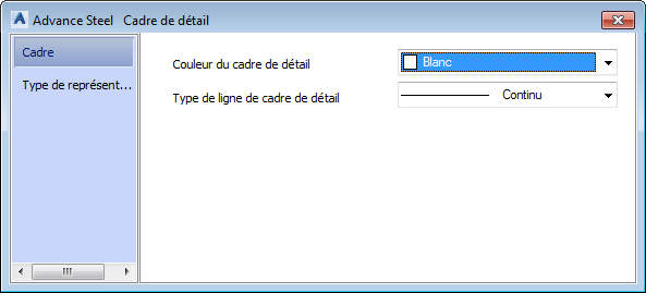 | Vue | Cette liste déroulante contient une liste de toutes les demandes de vues disponibles dans Advance Steel qui sont utilisées lors de la génération de vues de détails. |