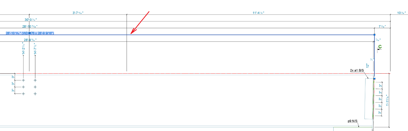 Cette situation se produit lorsque le style de dessin est configuré avec plusieurs demandes de cotation pour le même objet (par exemple, cotations des raidisseurs le long de la longueur de la poutre). Ce type de configuration est effectuée lorsque différentes chaînes sont nécessaires pour un même objet selon la position relative de l'objet par rapport à l'axe du milieu de la poutre, par exemple.