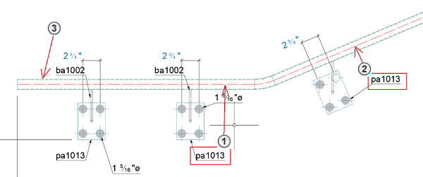 Si vous sélectionnez Label 1, la direction de référence est fournie par le segment de polypoutre horizontale. Si vous sélectionnez Label 2, la direction de référence est fournie par le segment de polypoutre incliné.