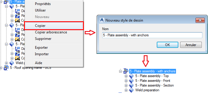 Lors de la modification d'un style de dessin ou de l'ajout d'un nouveau style, il est recommandé d'utiliser l'option Copier (et non l'option Copie totale) et de réutiliser autant de sous-fonctionnalités que possible.
