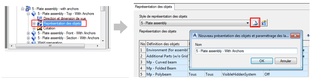 Le flux de travail d'ajout d'un nouvel objet dans la règle de présentation des objets pour la création de plans de détail d'ancrage implique les modifications suivantes pour la hiérarchie du style de dessin :