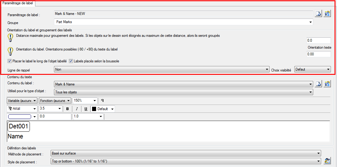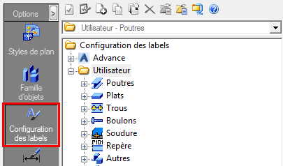 Ainsi, il est nécessaire d'ajouter des labels uniquement sur les plats soudés sur côté, tandis qu'une autre tôle associée à l'assemblage ne dispose pas d'un label. Il est possible de configurer le style de plan pour :