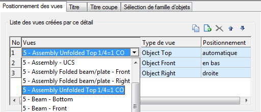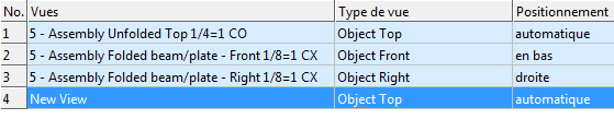 Les vues créées par le style de dessin sélectionné sont répertoriées dans une table.