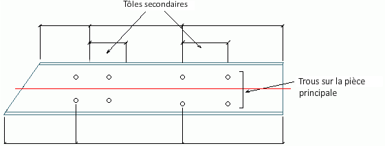 Les plaques secondaires ainsi que tous les groupes de perçages de la pièce principale sont cotés tel qu'illustré sur l'image suivante :