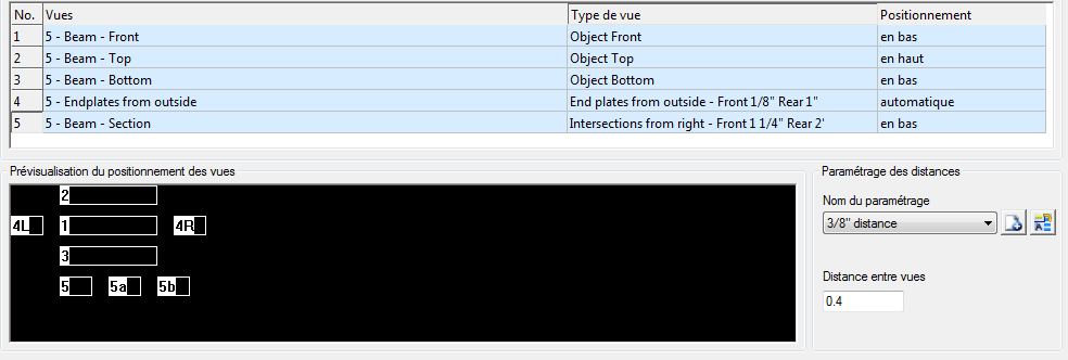 La définition d'une distance entre les vues (toujours mesurée à partir de l'objet extrême de la vue de détail) permet d'éviter le chevauchement des vues individuelles dans le dessin.
