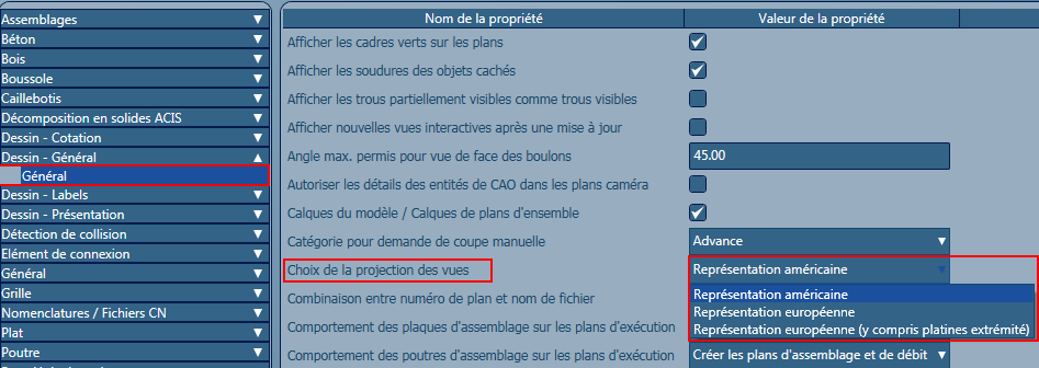 Ils sont configurés en attribuant un positionnement automatique à toutes les vues. Le positionnement automatique des vues est effectué en fonction des règles de troisième ou premier dièdre. La méthode utilisée est définie par une valeur par défaut globale disponible dans l'application Management Tools