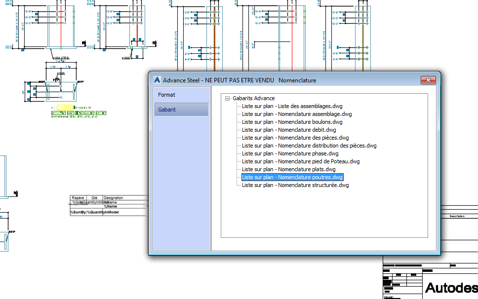 Cette commande vous permet de créer une liste qui contient des informations sur les détails spécifiques d'un dessin, en fonction de votre sélection.