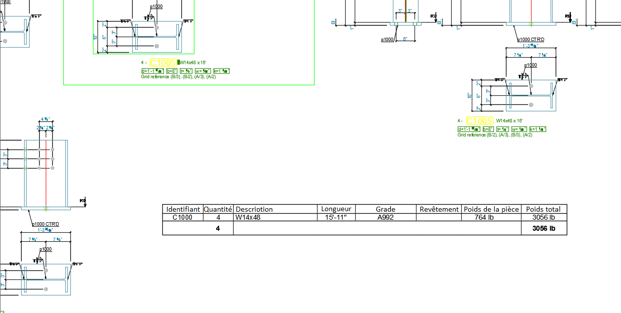 Le workflow de création d'une liste pour des détails spécifiques est très similaire au workflow de création d'une liste pour l'ensemble du plan. Toutefois, avant le placement de la liste dans le plan, vous devez sélectionner les détails souhaités. Tous les éléments des détails sélectionnés seront évalués dans la liste. La sélection peut inclure un ou plusieurs détails, y compris les présentations.