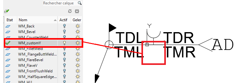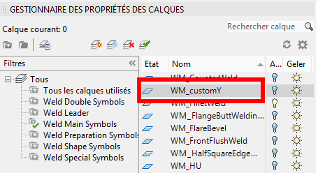 - MainSymbolLayer = le nom du calque principal du symbole de soudure dans "WeldTemplate.dwg", par exemple, WM_customY.