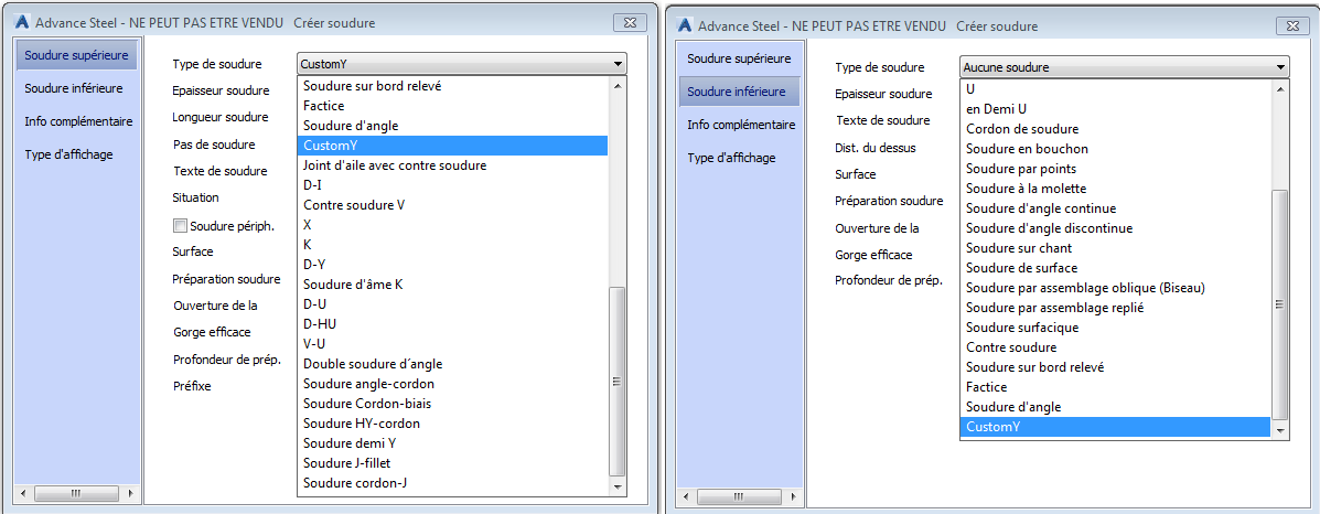 - Le nouveau type de soudure est désormais disponible dans la boîte de dialogue Soudure :