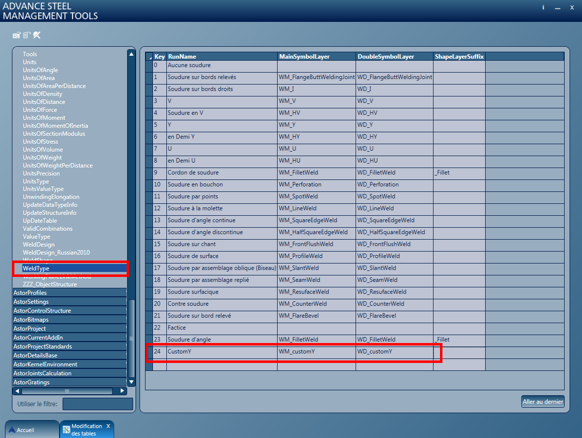 - DoubleSymbolLayer = le nom du calque du symbole de double soudure dans "WeldTemplate.dwg", par exemple, WD_customY.