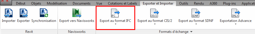- Exportez un modèle Advance Steel dans un fichier IFC : sur le ruban, sélectionnez (Export au format IFC).