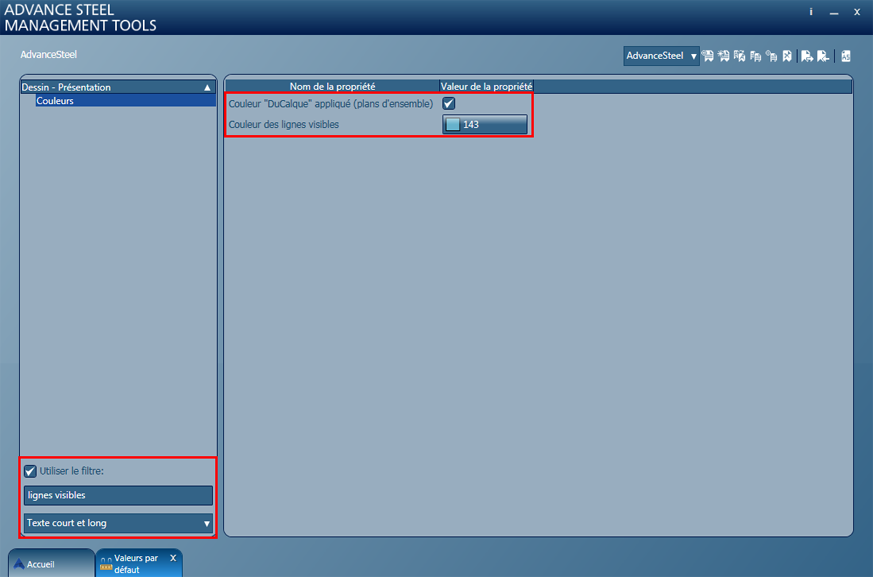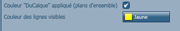 Si la case "Couleur "DuCalque" appliquée (plans d'ensemble)" est désactivée, la couleur des lignes visibles des éléments des plans généraux (d'ensemble) sera définie en fonction de la valeur par défaut "Couleur des lignes visibles".