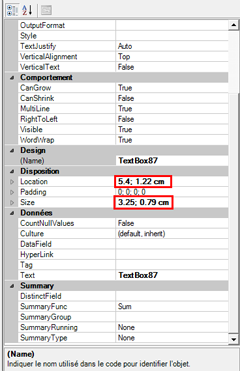 Toutes les informations relatives au nouveau champ de texte inséré sont disponibles dans la liste des propriétés. Les informations peuvent être modifiées, si nécessaire :