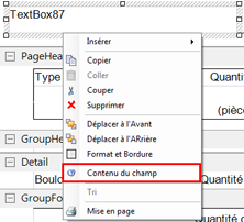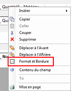 Pour accéder à la boîte de dialogue Format et Bordure, sélectionnez un champ, cliquez avec le bouton droit de la souris et sélectionnez Format et Bordure dans le menu contextuel.
