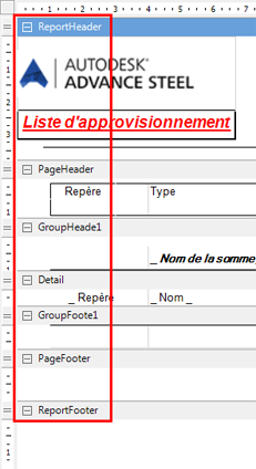 Suivez les mêmes étapes que lors de l'insertion d'un nouveau champ de texte. Lors de l'introduction d'une nouvelle colonne, l'espace requis doit être créé en premier lieu, dans chaque section du gabarit (En-tête de page, En-tête de groupe, Détail, Pied de page de groupe et Pied de page).