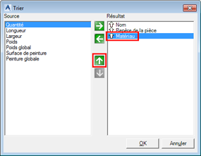 Les critères de tri nouvellement créés permettront de trier des éléments individuels des listes par nom, qualité du matériau (S235 avant S355) et repères. Pour confirmer la sélection, cliquez sur OK.