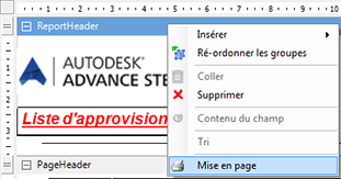 En-tête de rapport Ces champs apparaissent uniquement sur la première page de la liste. |