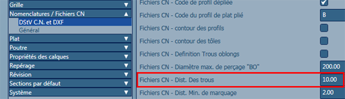 Cette erreur est due à la valeur par défaut "Distance minimum pour les trous dans fichier CN". Le message d'erreur vous avertit que la distance entre l'arête du trou du boulon et la marge de la tôle est inférieure à la distance par défaut.