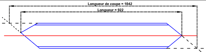 Pour afficher la différence entre la longueur et la longueur de découpe pour les poutres, nous allons utiliser une poutre avec découpe sur les deux côtés. Si une extrémité de la poutre présente des coupes doubles, la longueur de découpe est définie par la coupe qui crée la poutre la plus courte.