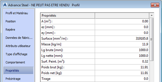 La longueur de la poutre est affichée dans la boîte de dialogue des propriétés.