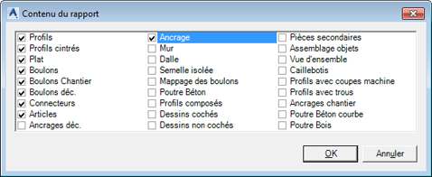 - Dans la boîte de dialogue Contenu de rapport, sélectionnez Ancres.