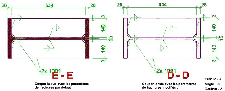 Par exemple, modifiez l'échelle et de la couleur des hachures par défaut Avant selon les valeurs suivantes :