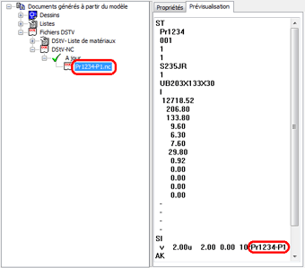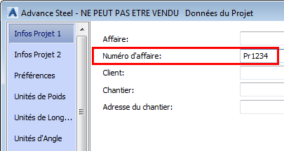 , il est possible que le numéro de projet (numéro de contrat) soit inclus dans le nom de fichier NC lors de sa création. Il est également possible de l'inclure dans le poinçonnage (marquage à la poudre) du numéro de pièce du composant en cours de production.