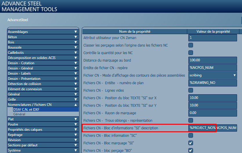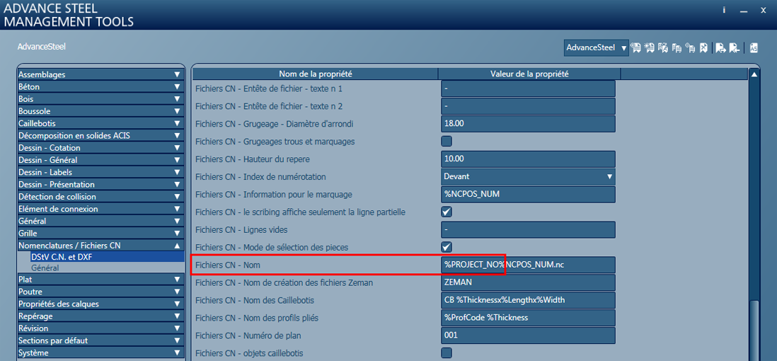 Avec cette modification des paramètres Management Tools, le fichier NC doit désormais comporter une autre référence au projet et est facilement identifiable.