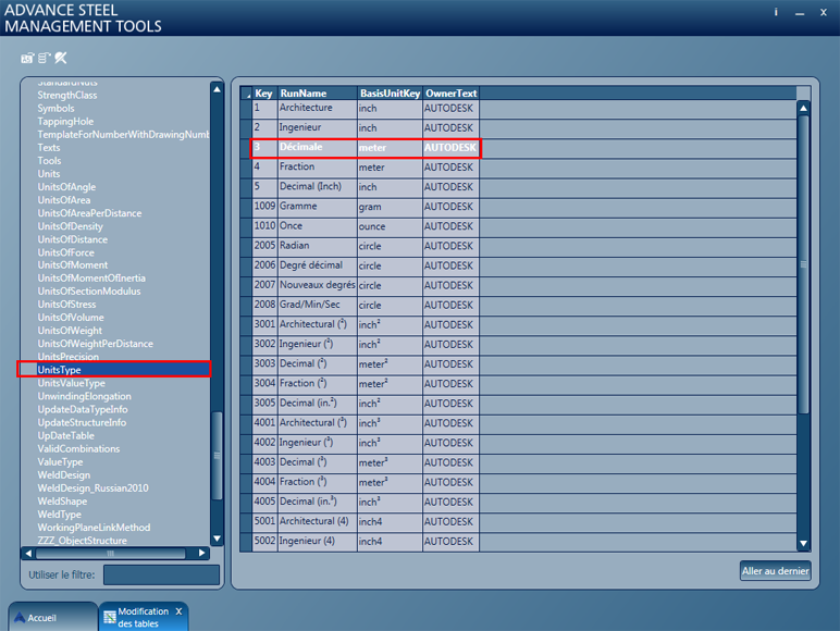 Unité 3 de la table UnitsType de la base de données AstorBase : décimal.