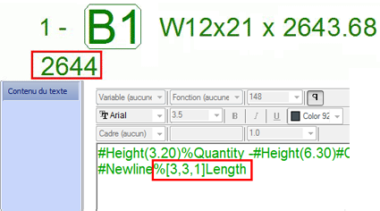 Dans Advance Steel, les unités sont définies pour chaque modèle, plan et liste. Cela signifie qu'un plan contient un paramètre pour les unités et la précision. Dans certains cas, il est nécessaire d'avoir un paramètre de précision ou d'unité différent pour un seul élément. Cette opération est possible dans Advance Steel en définissant un paramètre d'unité et de précision différent pour un simple label. Pour ce faire, vous devez ajouter les chiffres [1,2,3] à la variable. Par exemple, une variable %Longueur doit ressembler à %[1,2,3]Longueur lorsque les chiffres 1, 2, 3 doivent être remplacés par les clés requises extraites des tables d'unités dans AstorBase.