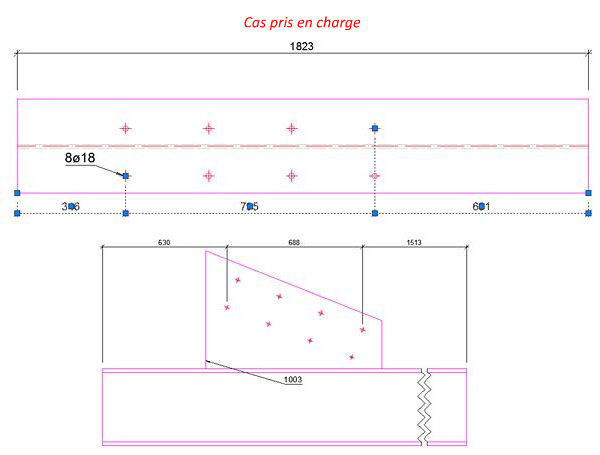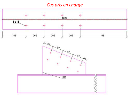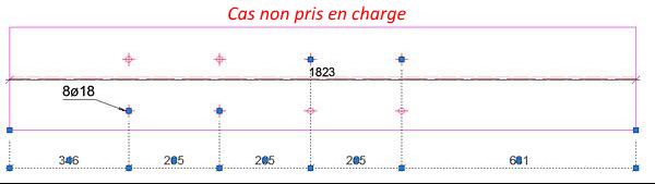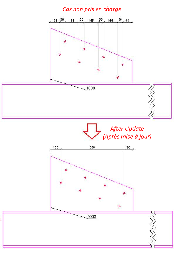 S'il existe plusieurs perçages/boulons sur une extrémité, l'un d'entre eux est pris en charge et la ligne de cotation ne se transforme pas en perçage similaire lors de la mise à jour.