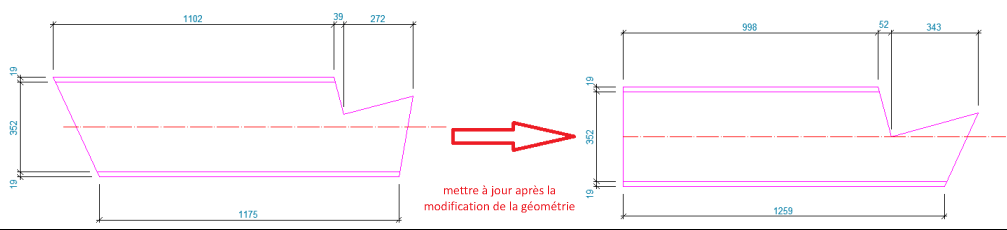 Les trous/boulons sélectionnés doivent se trouver du même côté du motif, sinon les points intermédiaires seront supprimés lors de la mise à jour.