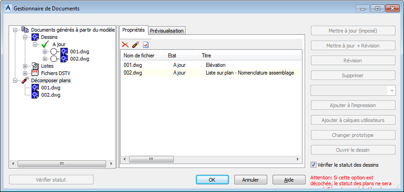 Les dessins détaillés apparaissent dans une nouvelle branche nommée Décomposition par lot.