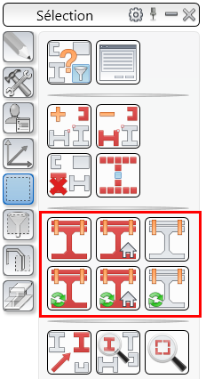 Il existe plusieurs fonctions permettant la mise en surbrillance des objets assemblés, en les marquant en rouge. Ces fonctions sont regroupées dans la palette d'outils Sélection. Elles autorisent :