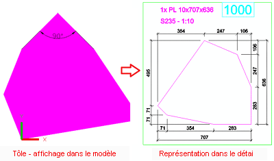 Dans la plupart des cas, les tôles sont orientées dans la direction horizontale dans la vue de détail, le long du côté le plus long. Il existe quelques exceptions dans le cas de la tôle polygonale :