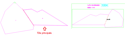 A l'aide de la commande "Sélectionner la tôle référence pour le développé", vous pouvez modifier la tôle principale et obtenir un résultat différent.
