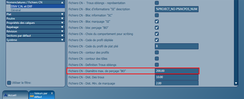 Pour gérer ce problème, utilisez la valeur par défaut "Fichiers CN - Diamètre max. de perçage "BO"" dans Management Tools.